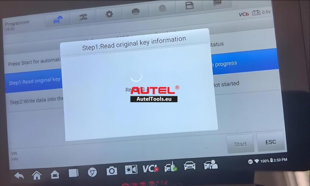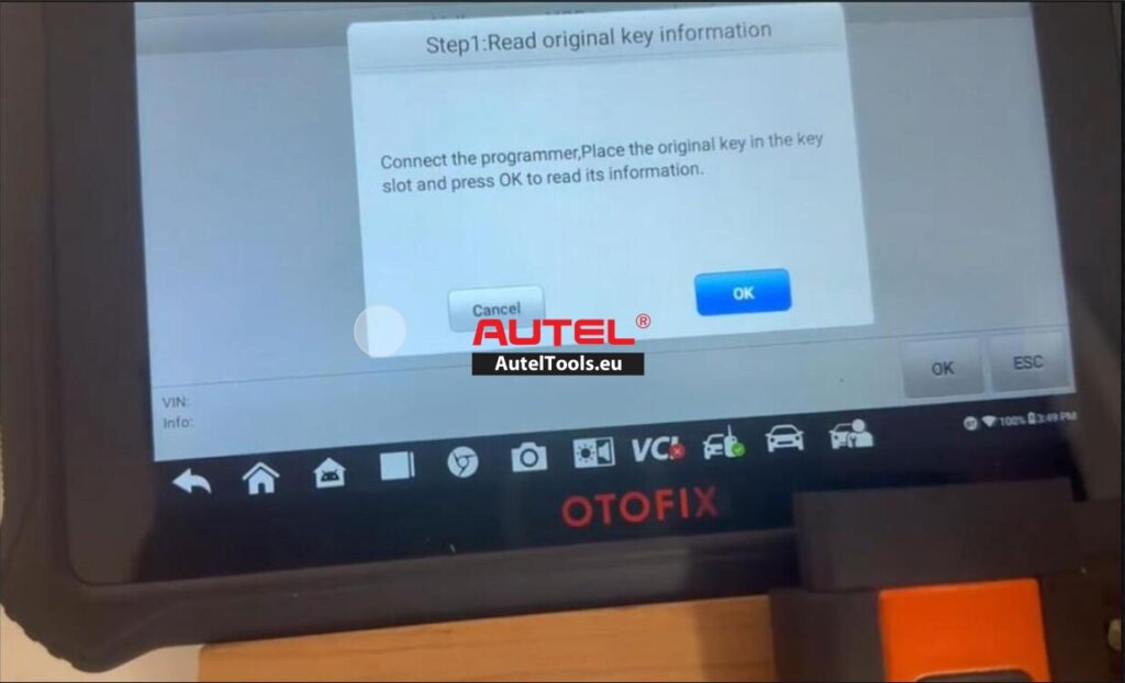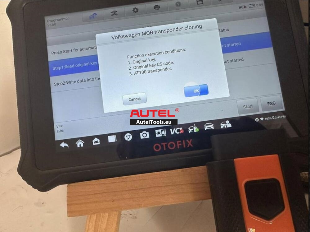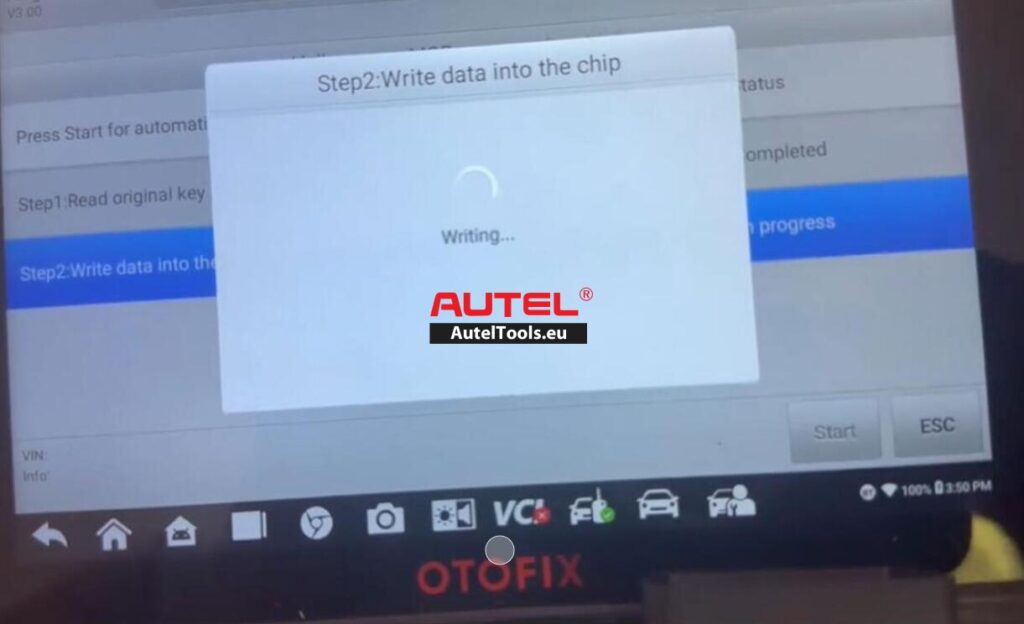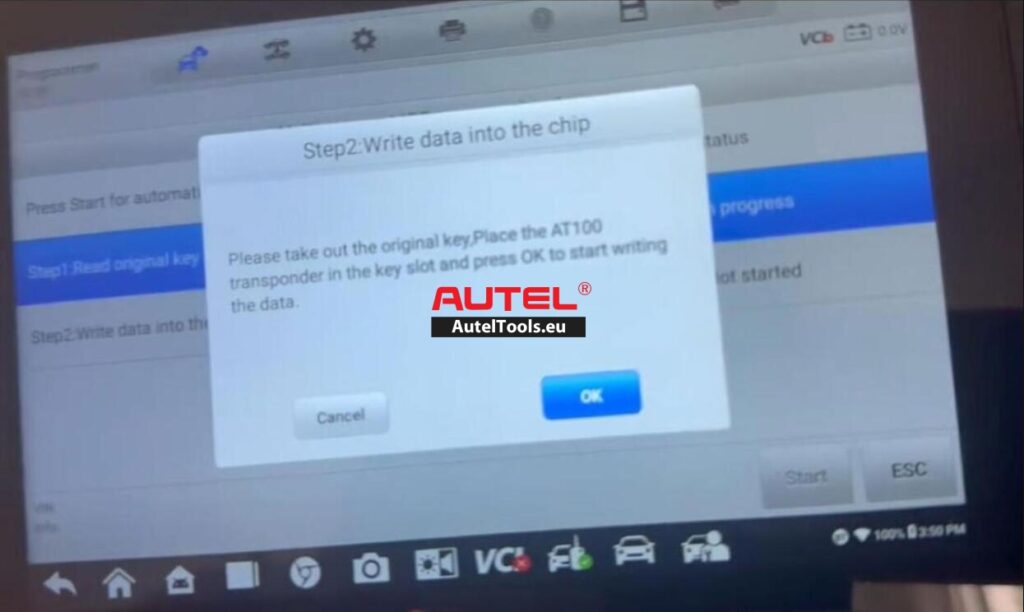 Take out the original key, place the AT100 transponder in the key and press OK to start writting the data
