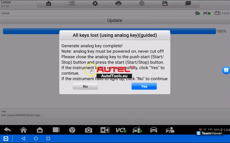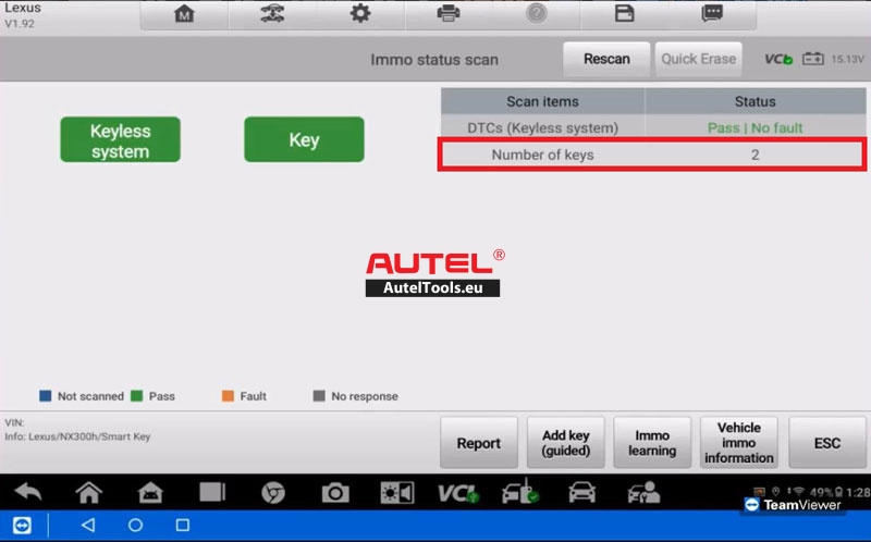 This process should restore all lost keys on the Lexus NX300H with the Autel IM608 PROII.