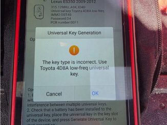 Problem: When i tried to generate Lexus es350 key today Autel KM100E is giving me error. I used the Autel Toyota key (ikeyty8a4tp) but not […]